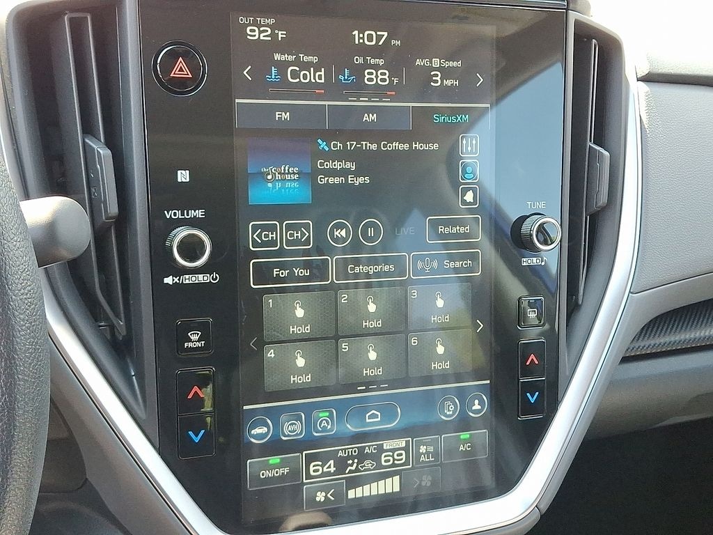 10-Way Power Driver's Seat, 4-Wheel Disc Brakes, 6 Speakers, ABS brakes, Air Conditioning, All-Weather Package, Alloy wheels, AM/FM radio: SiriusXM, Anti-whiplash front head restraints, Auto High-beam Headlights, Auto-Dimming Mirror w/Compass & HomeLink, Automatic temperature control, Blind Spot Detection (BSD), Brake assist, BSD/RCTA & All Wthr Pkg & Pwr Dr. Seat & Pwr Moonrf, Bumpers: body-color, Cloth Upholstery, Driver door bin, Driver vanity mirror, Dual front impact airbags, Dual front side impact airbags, Dual-Mode Heated Front Seats, Electronic Stability Control, Emergency communication system, Exterior Parking Camera Rear, Four wheel independent suspension, Front anti-roll bar, Front Bucket Seats, Front Center Armrest, Front dual zone A/C, Front fog lights, Front reading lights, Fully automatic headlights, Heated Power Exterior Mirrors, Illuminated entry, Knee airbag, LED Upgrade, Low tire pressure warning, Occupant sensing airbag, Outside temperature display, Overhead airbag, Overhead console, Panic alarm, Passenger door bin, Passenger vanity mirror, Power door mirrors, Power Moonroof, Power steering, Power windows, Radio data system, Radio: Subaru 11.6" Multimedia Plus System, Rear anti-roll bar, Rear Bumper Cover, Rear Cross-Traffic Alert (RCTA) System, Rear seat center armrest, Rear window defroster, Rear window wiper, Remote keyless entry, Security system, Speed control, Speed-sensing steering, Split folding rear seat, Spoiler, Steering wheel mounted audio controls, Tachometer, Telescoping steering wheel, Tilt steering wheel, Traction control, Trip computer, Turn signal indicator mirrors, Variably intermittent wipers, Wheels: 17" x 7.0" J Machine Finish Aluminum-Alloy, Windshield De-Icer Wipers.