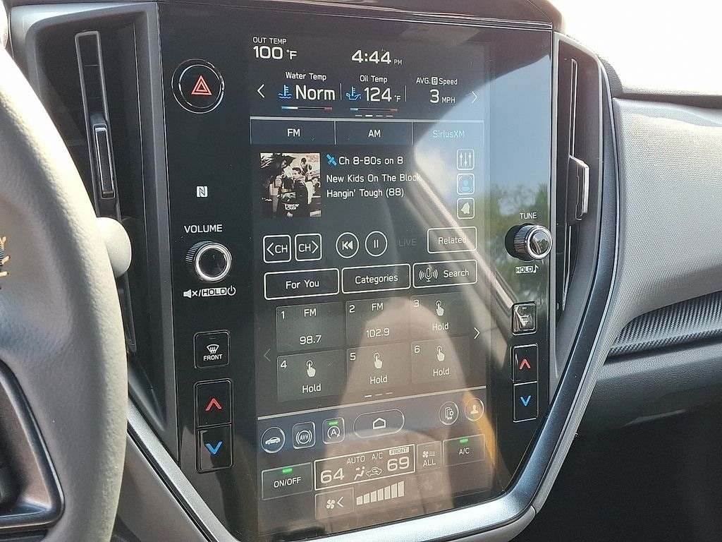 10-Way Power Driver's Seat, 4-Wheel Disc Brakes, 6 Speakers, ABS brakes, Air Conditioning, Alloy wheels, AM/FM radio: SiriusXM, Anti-whiplash front head restraints, Auto High-beam Headlights, Auto-Dimming Exterior Mirror w/Approach Light, Auto-Dimming Mirror w/Compass & HomeLink, Automatic temperature control, Blind Spot Detection (BSD), Brake assist, BSD/RCTA & Power Driver Seat & Power Moonroof, Bumpers: body-color, Crosstrek Mirror Package, Driver door bin, Driver vanity mirror, Dual front impact airbags, Dual front side impact airbags, Electronic Stability Control, Emergency communication system, Exterior Parking Camera Rear, Four wheel independent suspension, Front anti-roll bar, Front Bucket Seats, Front Center Armrest, Front dual zone A/C, Front fog lights, Front reading lights, Fully automatic headlights, Heated door mirrors, Heated Front Bucket Seats, Heated front seats, Illuminated entry, Knee airbag, Leather Shift Knob, Leather steering wheel, LED Upgrade, Low tire pressure warning, Occupant sensing airbag, Outside temperature display, Overhead airbag, Overhead console, Panic alarm, Passenger door bin, Passenger vanity mirror, Power door mirrors, Power Moonroof, Power steering, Power windows, Radio data system, Radio: Subaru 11.6" Multimedia Plus System, Rear anti-roll bar, Rear Bumper Cover, Rear Cross-Traffic Alert (RCTA) System, Rear seat center armrest, Rear window defroster, Rear window wiper, Remote keyless entry, Security system, Speed control, Speed-sensing steering, Split folding rear seat, Spoiler, Sport Cloth Upholstery, Steering wheel mounted audio controls, Tachometer, Telescoping steering wheel, Tilt steering wheel, Traction control, Trip computer, Turn signal indicator mirrors, Variably intermittent wipers, Wheels: 18" x 7.0" J Dark Gray Aluminum-Alloy.