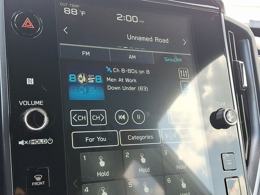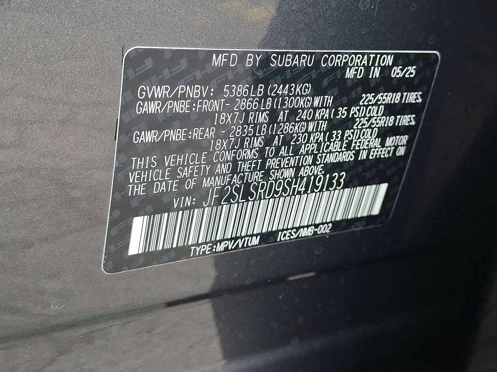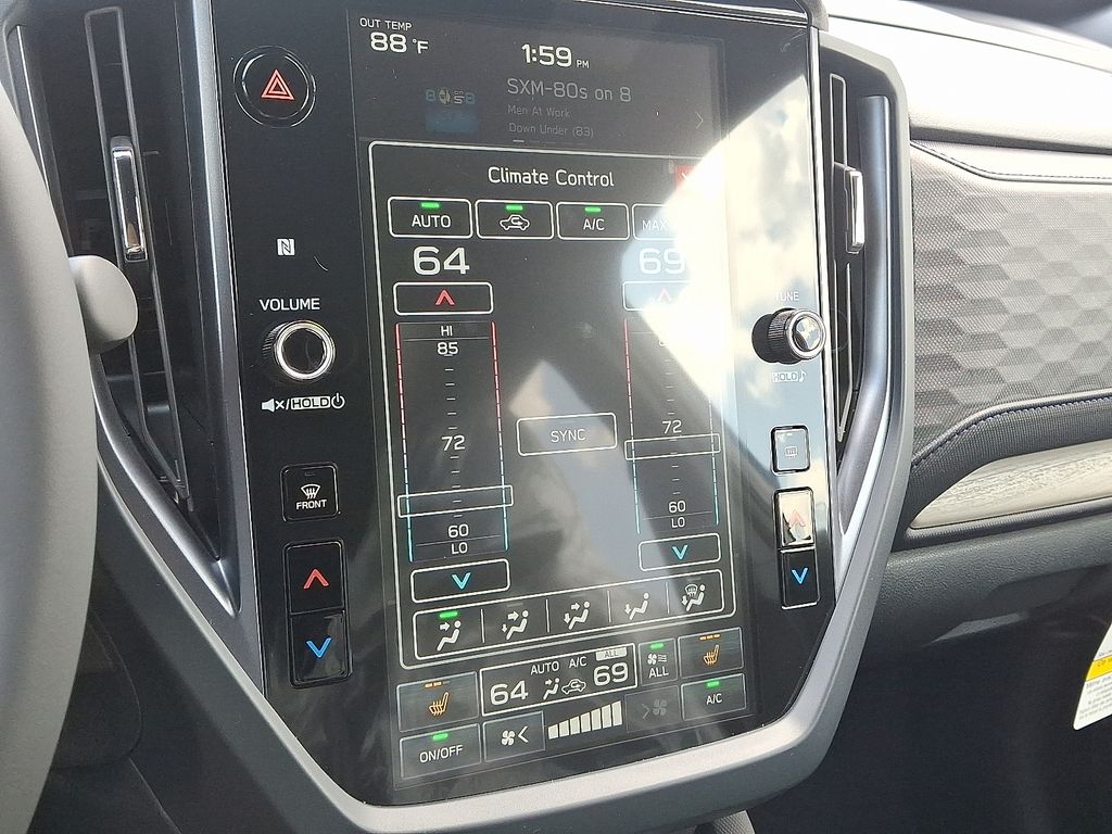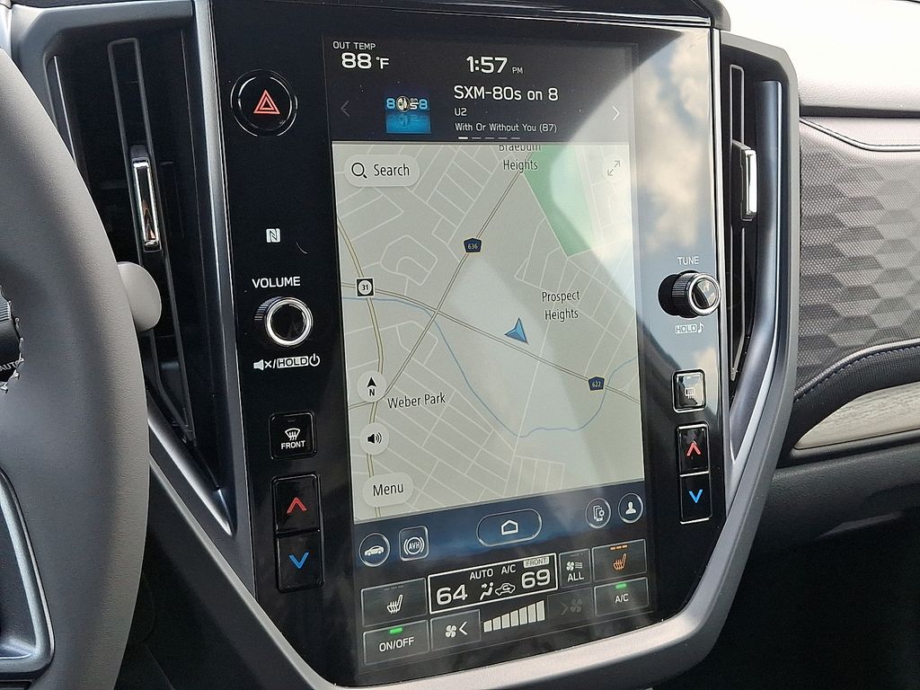 2.5L 4-Cylinder DOHC 16V, 11 Speakers, 4-Wheel Disc Brakes, ABS brakes, Air Conditioning, Alloy wheels, AM/FM radio: SiriusXM with 360L, Anti-whiplash front head restraints, Auto High-beam Headlights, Auto-Dimming Exterior Mirror with Approach Light, Auto-Dimming Mirror with Compass and HomeLink, Automatic temperature control, Brake assist, Bumpers: body-color, Compass, Driver door bin, Driver vanity mirror, Dual front impact airbags, Dual front side impact airbags, Electronic Stability Control, Emergency communication system: MySubaru Safety (3-year free trial), Exterior Parking Camera Rear, Four wheel independent suspension, Front anti-roll bar, Front Bucket Seats, Front Center Armrest, Front dual zone A/C, Front fog lights, Front reading lights, Fully automatic headlights, harman/kardon® Speakers, Heated door mirrors, Heated Front Bucket Seats, Heated front seats, Illuminated entry, Knee airbag, LED Upgrade, Low tire pressure warning, Navigation system: TomTom Navigation w/what3words, Occupant sensing airbag, Outside temperature display, Overhead airbag, Overhead console, Panic alarm, Passenger door bin, Passenger vanity mirror, Power door mirrors, Power driver seat, Power Liftgate, Power moonroof: Panoramic, Power passenger seat, Power steering, Power windows, Radio data system, Radio: Subaru 11.6" Multimedia Navigation System, Rear anti-roll bar, Rear seat center armrest, Rear window defroster, Rear window wiper, Remote keyless entry, Security system, Speed control, Speed-sensing steering, Splash Guards, Split folding rear seat, Spoiler, Standard Model, StarTex Upholstery, Steering wheel mounted audio controls, Tachometer, Telescoping steering wheel, Tilt steering wheel, Traction control, Trip computer, Turn signal indicator mirrors, Variably intermittent wipers, Wheels: 18" x 7.0 J Dark Metallic Aluminum-Alloy, 2.5L 4-Cylinder DOHC 16V.