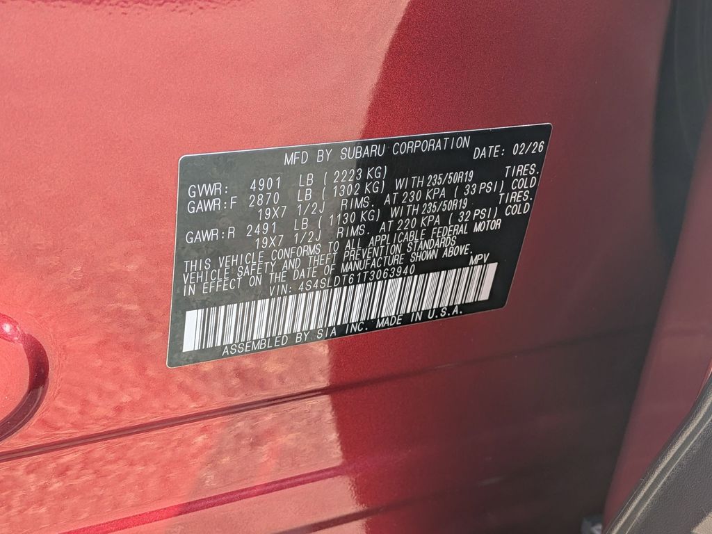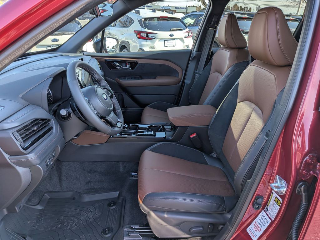 11 Speakers, 4-Wheel Disc Brakes, ABS brakes, Air Conditioning, Alloy wheels, AM/FM radio: SiriusXM with 360L, Anti-whiplash front head restraints, Auto High-beam Headlights, Automatic temperature control, Brake assist, Bumpers: body-color, Driver door bin, Driver vanity mirror, Dual front impact airbags, Dual front side impact airbags, Electronic Stability Control, Emergency communication system: MySubaru Companion (5-years free), Exterior Parking Camera Rear, Four wheel independent suspension, Front anti-roll bar, Front Bucket Seats, Front Center Armrest, Front dual zone A/C, Front fog lights, Front reading lights, Fully automatic headlights, harman/kardon® Speakers, Heads-Up Display, Heated and Ventilated Front Bucket Seats, Heated door mirrors, Heated front seats, Heated rear seats, Heated steering wheel, HVAC memory, Illuminated entry, Knee airbag, Leather Shift Knob, Leather steering wheel, Low tire pressure warning, Memory seat, Navigation System, Occupant sensing airbag, Outside temperature display, Overhead airbag, Overhead console, Panic alarm, Passenger door bin, Passenger vanity mirror, Perforated Leather-Trimmed Upholstery, Power door mirrors, Power driver seat, Power Liftgate, Power moonroof: Panoramic, Power passenger seat, Power steering, Power windows, Radio data system, Radio: Subaru 11.6" Multimedia Navigation System, Rain sensing wipers, Rear anti-roll bar, Rear seat center armrest, Rear window defroster, Rear window wiper, Remote keyless entry, Security system, Speed control, Speed-sensing steering, Split folding rear seat, Spoiler, Steering wheel mounted audio controls, Tachometer, Telescoping steering wheel, Tilt steering wheel, Traction control, Trip computer, Turn signal indicator mirrors, Variably intermittent wipers, Ventilated front seats, Wheels: 19" x 7.5 J Dark Gray Aluminum-Alloy.