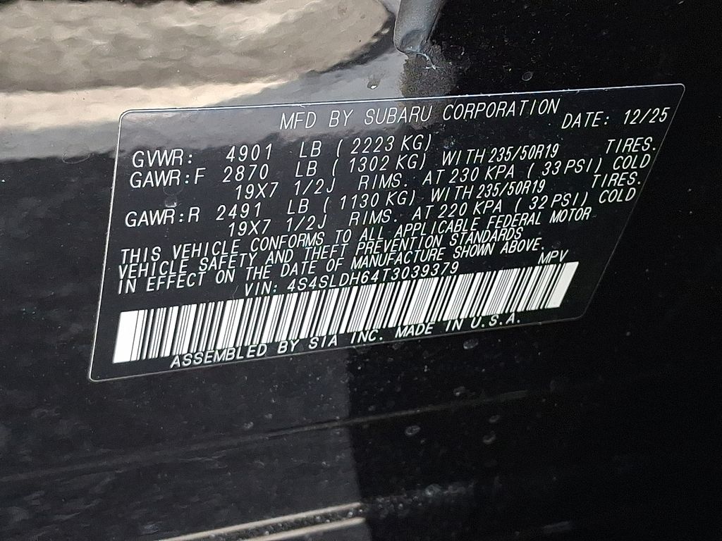 4-Wheel Disc Brakes, 6 Speakers, ABS brakes, Air Conditioning, Alloy wheels, AM/FM radio: SiriusXM with 360L, Anti-whiplash front head restraints, Auto High-beam Headlights, Auto-Dimming Mirror with Compass and HomeLink, Automatic temperature control, Brake assist, Bumpers: body-color, Cargo Net, Driver door bin, Driver vanity mirror, Dual front impact airbags, Dual front side impact airbags, Electronic Stability Control, Emergency communication system: MySubaru Companion (5-years free), Exterior Parking Camera Rear, Four wheel independent suspension, Front anti-roll bar, Front Bucket Seats, Front Center Armrest, Front dual zone A/C, Front fog lights, Front reading lights, Fully automatic headlights, Harman/Kardon Speaker System, Harman/Kardon Speaker System and Power Rear Gate and Reverse Automatic Braking, Heated door mirrors, Heated Front Bucket Seats, Heated front seats, Illuminated entry, Knee airbag, Leather steering wheel, LED Upgrade, Low tire pressure warning, Occupant sensing airbag, Outside temperature display, Overhead airbag, Overhead console, Panic alarm, Passenger door bin, Passenger vanity mirror, Power door mirrors, Power driver seat, Power moonroof: Panoramic, Power Rear Gate, Power steering, Power windows, Radio data system, Radio: Subaru 11.6" Multimedia Plus System, Rear anti-roll bar, Rear seat center armrest, Rear Seatback Protector, Rear window defroster, Rear window wiper, Remote keyless entry, Reverse Automatic Braking (RAB) System, Security system, SI-Drive Dual-Mode Engine Performance Management, Speed control, Speed-sensing steering, Splash Guards, Split folding rear seat, Spoiler, Sport StarTex Upholstery, Steering wheel mounted audio controls, Tachometer, Telescoping steering wheel, Tilt steering wheel, Traction control, Trip computer, Turn signal indicator mirrors, Variably intermittent wipers, Wheels: 19" x 7.5 J Bronze Finish Aluminum-Alloy.