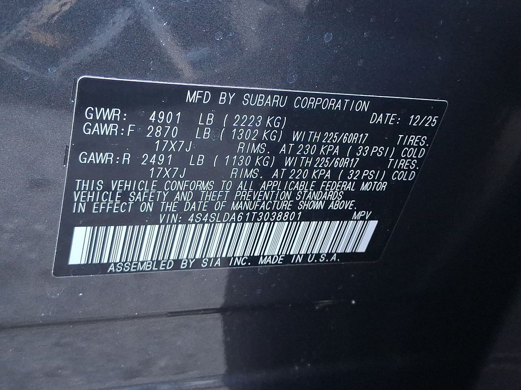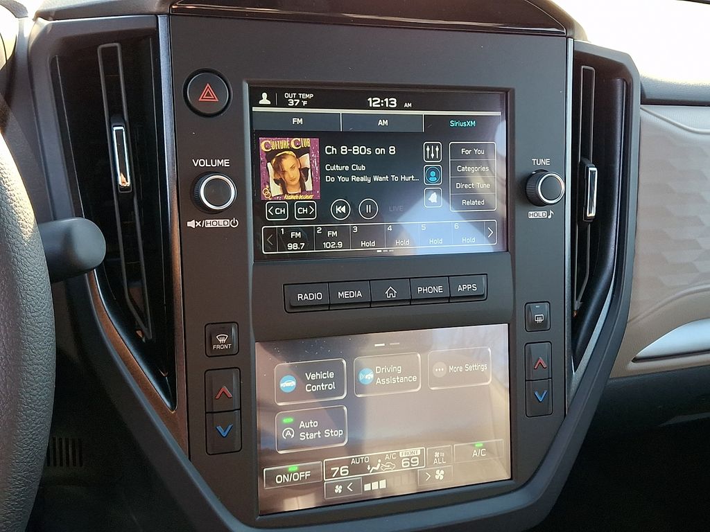 4 Speakers, 4-Wheel Disc Brakes, ABS brakes, Air Conditioning, Alloy wheels, AM/FM radio: SiriusXM, Anti-whiplash front head restraints, Auto High-beam Headlights, Auto-Dimming Mirror with Compass and HomeLink, Automatic temperature control, Brake assist, Bumpers: body-color, Driver door bin, Driver vanity mirror, Dual front impact airbags, Dual front side impact airbags, Electronic Stability Control, Exterior Parking Camera Rear, Four wheel independent suspension, Front anti-roll bar, Front Bucket Seats, Front Center Armrest, Front dual zone A/C, Front reading lights, Fully automatic headlights, Hexagonal Patterned Cloth Upholstery, Illuminated entry, Knee airbag, Low tire pressure warning, Occupant sensing airbag, Outside temperature display, Overhead airbag, Overhead console, Panic alarm, Passenger door bin, Passenger vanity mirror, Power door mirrors, Power steering, Power windows, Radio data system, Radio: Subaru Dual 7.0" Multimedia System, Rear anti-roll bar, Rear window defroster, Rear window wiper, Remote keyless entry, Security system, Speed control, Speed-sensing steering, Split folding rear seat, Spoiler, Standard Model, Steering wheel mounted audio controls, Tachometer, Telescoping steering wheel, Tilt steering wheel, Traction control, Trip computer, Variably intermittent wipers, Wheels: 17" x 7.0 J Dark Metallic Aluminum-Alloy.