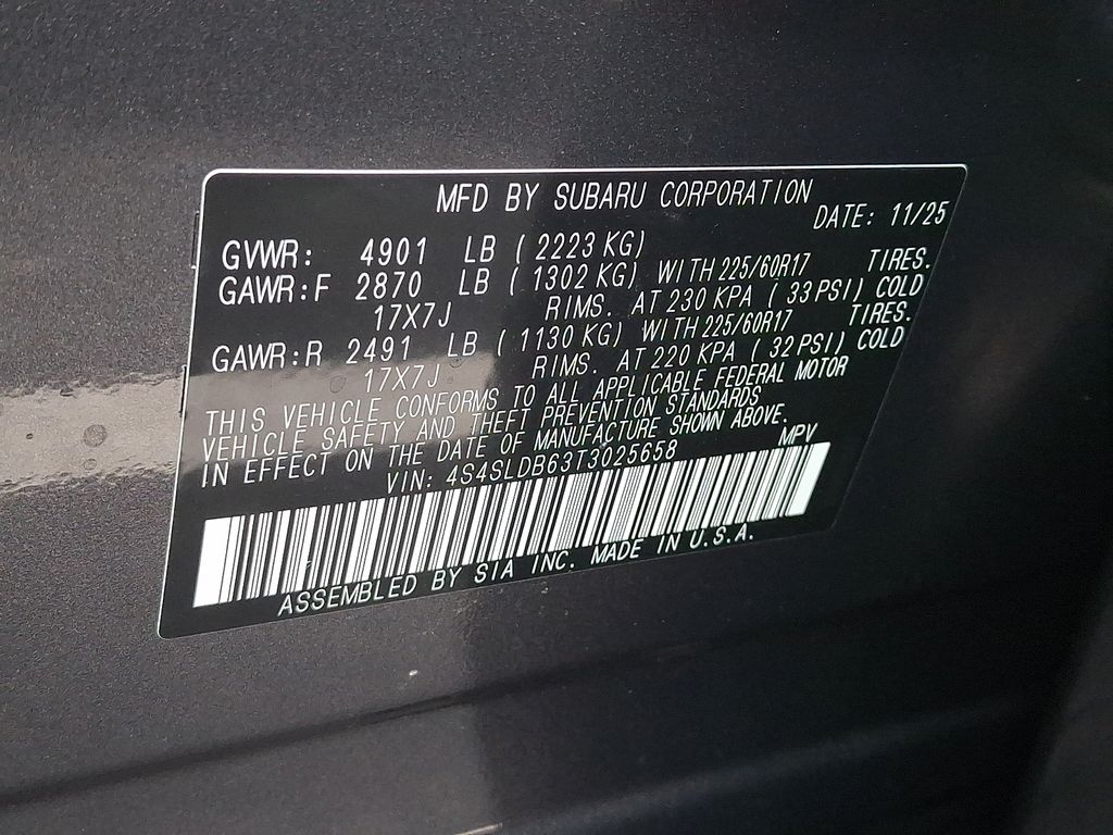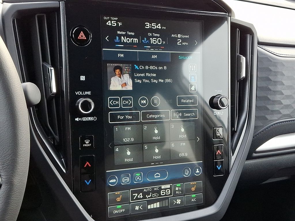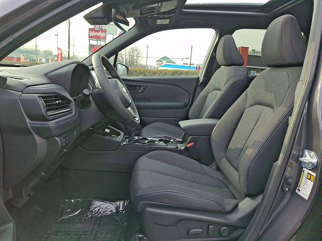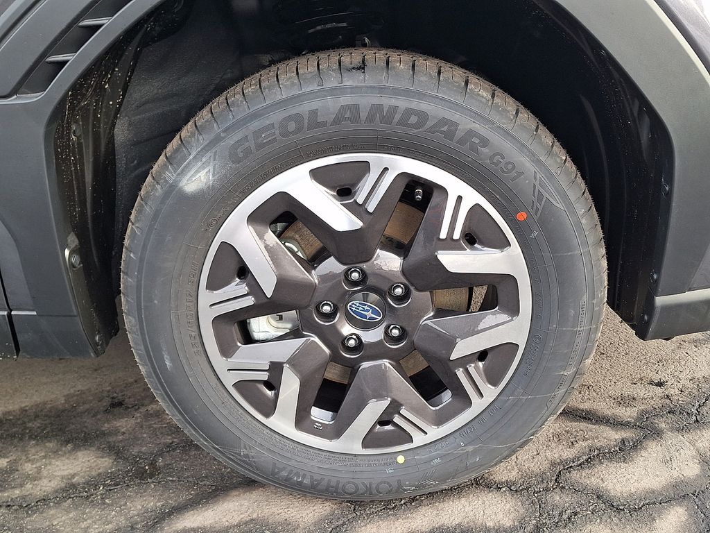 4-Wheel Disc Brakes, 6 Speakers, ABS brakes, Air Conditioning, Alloy wheels, AM/FM radio: SiriusXM with 360L, Anti-whiplash front head restraints, Auto High-beam Headlights, Auto-Dimming Mirror with Compass and HomeLink, Automatic temperature control, Brake assist, Bumpers: body-color, Cargo Tray, Driver door bin, Driver vanity mirror, Dual front impact airbags, Dual front side impact airbags, Electronic Stability Control, Emergency communication system: MySubaru Companion (5-years free), Exterior Parking Camera Rear, Four wheel independent suspension, Front anti-roll bar, Front Bucket Seats, Front Center Armrest, Front dual zone A/C, Front fog lights, Front reading lights, Fully automatic headlights, Heated door mirrors, Heated Front Bucket Seats, Heated front seats, Illuminated entry, Knee airbag, Leather steering wheel, LED Upgrade, Low tire pressure warning, Occupant sensing airbag, Outside temperature display, Overhead airbag, Overhead console, Panic alarm, Passenger door bin, Passenger vanity mirror, Power door mirrors, Power driver seat, Power moonroof: Panoramic, Power steering, Power windows, Premium Textured Cloth Upholstery, Radio data system, Radio: Subaru 11.6" Multimedia Plus System, Rear anti-roll bar, Rear seat center armrest, Rear window defroster, Rear window wiper, Remote keyless entry, Security system, Speed control, Speed-sensing steering, Split folding rear seat, Spoiler, Standard Model, Steering wheel mounted audio controls, Tachometer, Telescoping steering wheel, Tilt steering wheel, Traction control, Trip computer, Variably intermittent wipers, Wheels: 17" x 7.0 J Dark Metallic Aluminum-Alloy.