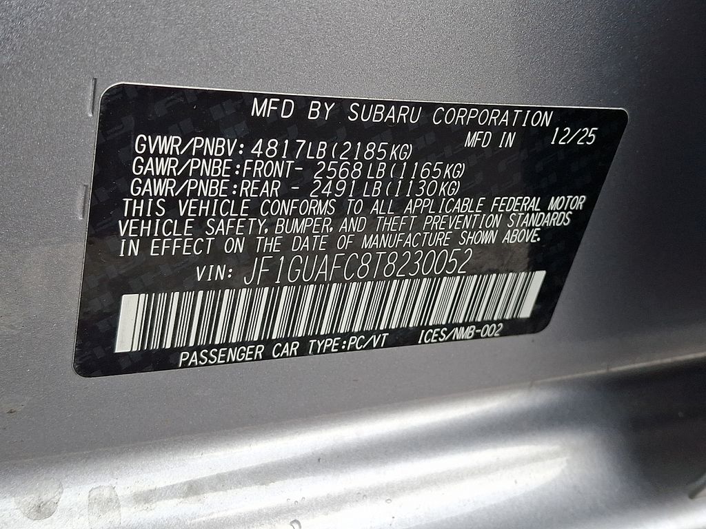 4-Wheel Disc Brakes, 6 Speakers, ABS brakes, Air Conditioning, All Weather Package, Alloy wheels, AM/FM radio: SiriusXM, Anti-whiplash front head restraints, Auto High-beam Headlights, Auto-Dimming Exterior Mirror with Approach Light, Auto-Dimming Mirror with Compass and HomeLink, Automatic Emergency Steering, Automatic temperature control, Blind Spot Detection (BSD), Blind Spot Detection and Rear Cross Traffic Alert and All Weather Package and Power Moonroof, Brake assist, Bumpers: body-color, Driver door bin, Driver vanity mirror, Dual front impact airbags, Dual front side impact airbags, Dual-Mode Heated Front Seats, Electronic Stability Control, Emergency communication system: MySubaru Companion (5-years free), Emergency Lane Keep Assist, Exterior Parking Camera Rear, Four wheel independent suspension, Front anti-roll bar, Front Bucket Seats, Front Center Armrest, Front dual zone A/C, Front fog lights, Front reading lights, Fully automatic headlights, Heated Exterior Power Mirrors, Illuminated entry, Knee airbag, Low tire pressure warning, Occupant sensing airbag, Outside temperature display, Overhead airbag, Overhead console, Panic alarm, Passenger door bin, Passenger vanity mirror, Power door mirrors, Power Moonroof, Power steering, Power windows, Radio data system, Radio: Subaru 11.6" Multimedia Plus System, Rear anti-roll bar, Rear Cross-Traffic Alert (RCTA) System, Rear seat center armrest, Rear side impact airbag, Rear window defroster, Rear window wiper, Remote keyless entry, Security system, Speed control, Speed-sensing steering, Split folding rear seat, Spoiler, Sport Cloth Upholstery, Steering wheel mounted audio controls, Sun Visors with Vanity Mirror and Lights, Tachometer, Telescoping steering wheel, Tilt steering wheel, Traction control, Trip computer, Turn signal indicator mirrors, Variably intermittent wipers, Wheels: 18" x 7.5" Jdark Gray Aluminum-Alloy, Windshield Wiper De-Icer.