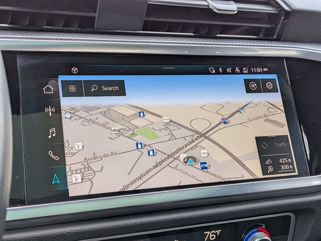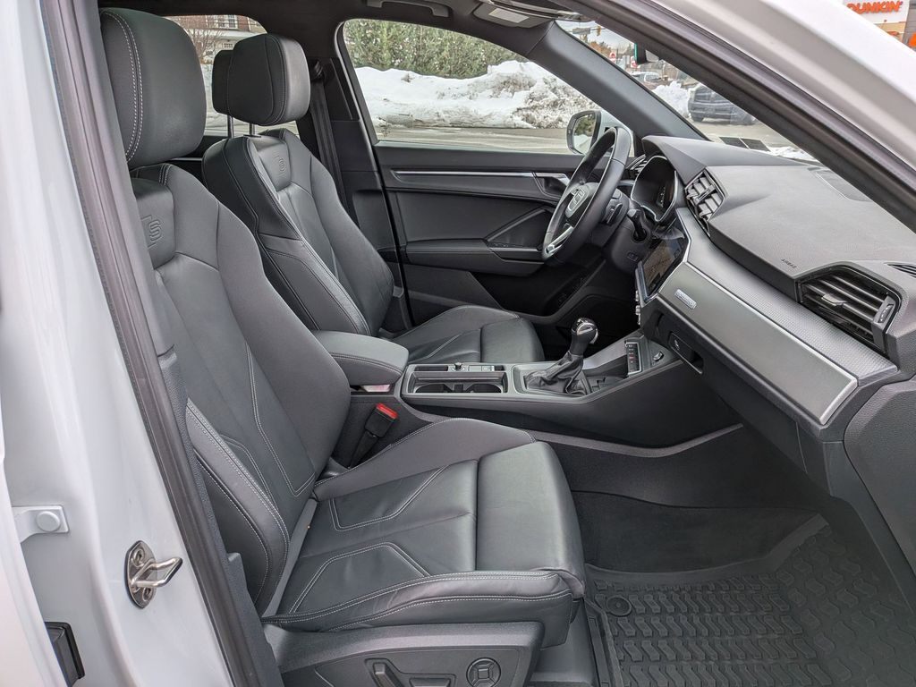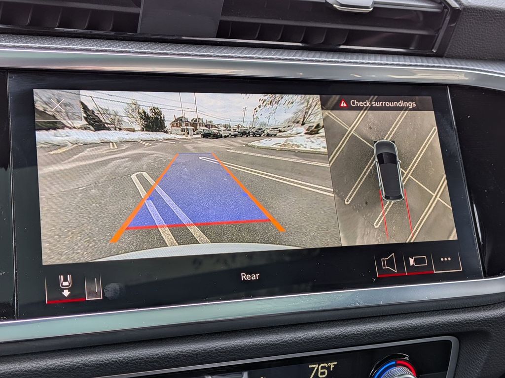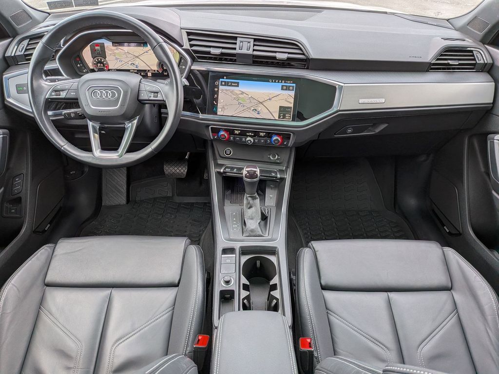The Q3's interior is a masterpiece of design and technology, featuring a 12.3" Audi Virtual Cockpit Plus Screen, Alexa Integration, Traffic Sign Recognition, and a premium Sonos sound system. The wireless charging pad and Audi Connect PLUS system keep you connected and entertained on the go. Comfort and convenience are further enhanced with the Adaptive Cruise Assist with Lane Guidance, a Top View Camera System, and a hands-free power tailgate.
