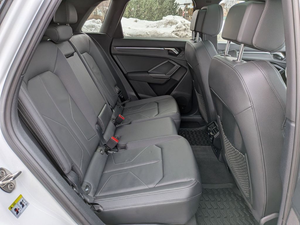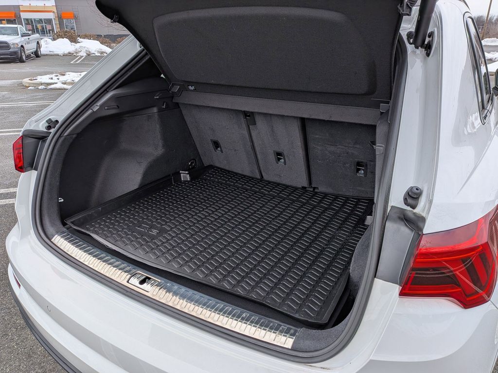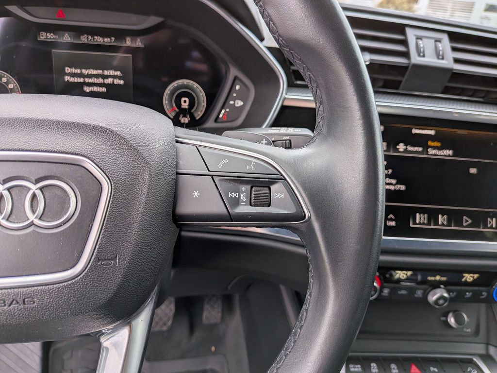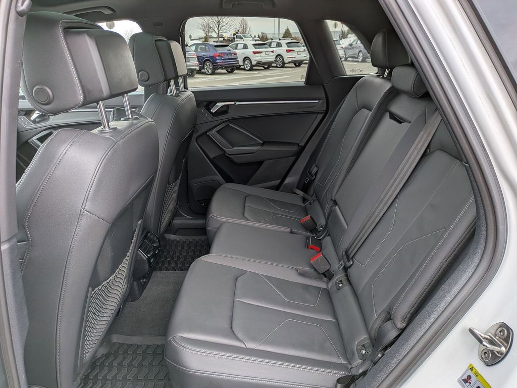 The Q3's interior is a masterpiece of design and technology, featuring a 12.3" Audi Virtual Cockpit Plus Screen, Alexa Integration, Traffic Sign Recognition, and a premium Sonos sound system. The wireless charging pad and Audi Connect PLUS system keep you connected and entertained on the go. Comfort and convenience are further enhanced with the Adaptive Cruise Assist with Lane Guidance, a Top View Camera System, and a hands-free power tailgate.