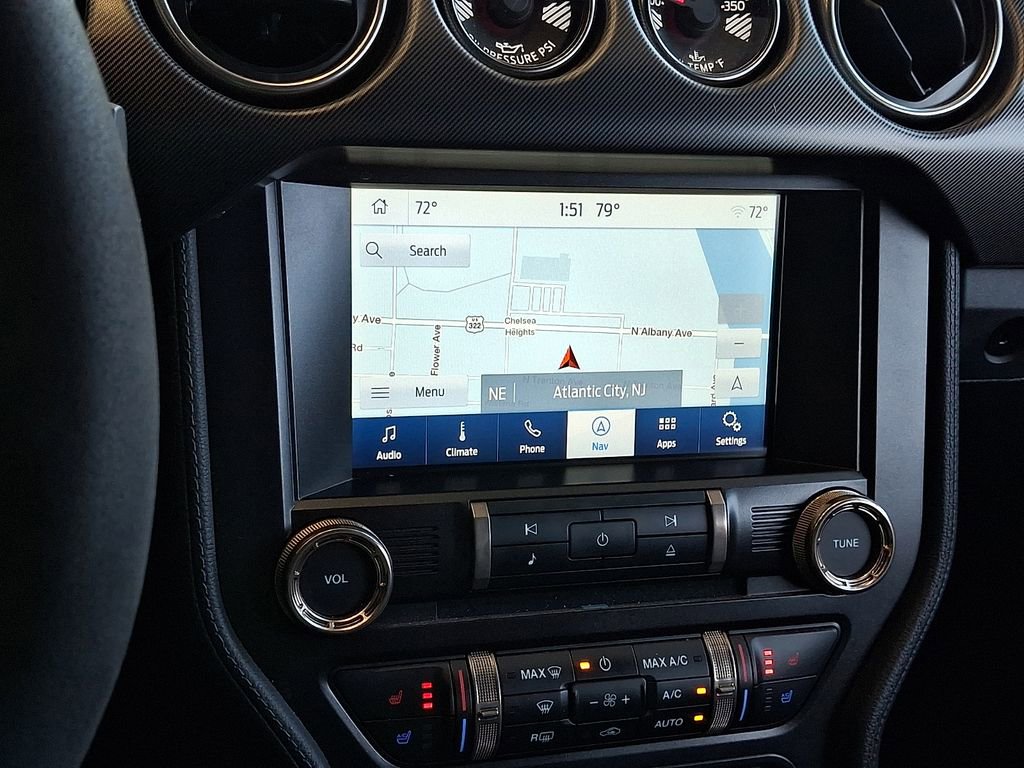 Elevate your driving experience with the Mustang Shelby GT500's exceptional features, including climate-controlled front seats, a leather-trimmed sport steering wheel, and a voice-activated navigation system. The adaptive suspension and high-performance brakes ensure precise handling and confident control, while the BLIS system and rear parking camera provide added peace of mind.