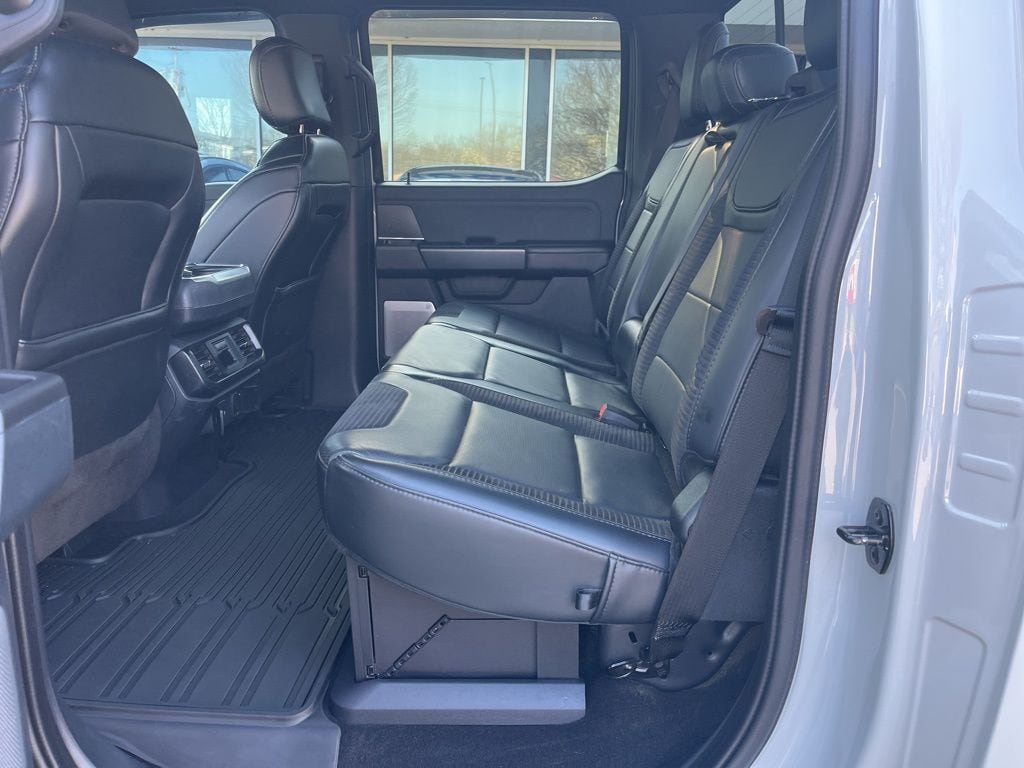 4WD, 17" Cast Aluminum Wheels, 17" Forged Aluminum Bead-Lock Capable Wheels, 18 Speakers, 4-Wheel Disc Brakes, ABS brakes, Adaptive suspension, Adjustable pedals, Air Conditioning, Alloy wheels, AM/FM radio: SiriusXM with 360L, Auto High-beam Headlights, Auto Start-Stop Removal (DISC), Auto tilt-away steering wheel, Auto-dimming door mirrors, Auto-dimming Rear-View mirror, Automatic temperature control, Brake assist, Bumpers: body-color, Compass, Delay-off headlights, Driver door bin, Driver vanity mirror, Dual front impact airbags, Dual front side impact airbags, Electronic Locking w/4.10 Axle Ratio, Electronic Stability Control, Emergency communication system, Equipment Group 801A Standard, Exterior Parking Camera Rear, Front anti-roll bar, Front Bucket Seats, Front Center Armrest, Front dual zone A/C, Front fog lights, Front reading lights, Front wheel independent suspension, Fully automatic headlights, Garage door transmitter, GVWR: 7,300 lbs Payload Package, Heated door mirrors, Heated front seats, Heated rear seats, Heated steering wheel, Illuminated entry, Inclination/Intrusion Sensor Removal, Lane Departure Warning System, Leather Trim Seats w/Heated 2nd Row, Low tire pressure warning, Memory seat, Navigation system: Connected Navigation, Occupant sensing airbag, Outside temperature display, Overhead airbag, Overhead console, Panic alarm, Partitioned Lockable Fold-Flat Storage, Passenger door bin, Passenger vanity mirror, Pedal memory, Power door mirrors, Power driver seat, Power passenger seat, Power steering, Power windows, Pro Power Onboard - 2KW, Radio data system, Radio: B&O Unleashed Sound System by Bang & Olufsen, Rain sensing wipers, Raptor Carbon Fiber Package, Rear reading lights, Rear step bumper, Rear window defroster, Remote keyless entry, Security system, Speed control, Speed-sensing steering, Split folding rear seat, Steering Wheel Heat Removal (DISC), Steering wheel memory, Steering wheel mounted audio controls, SYNC 4 w/Enhanced Voice Recognition, Tachometer, Telescoping steering wheel, Tilt steering wheel, Tough Bed Spray-In Bedliner, Traction control, Trip computer, Turn signal indicator mirrors, Variably intermittent wipers, Ventilated front seats, 4WD.