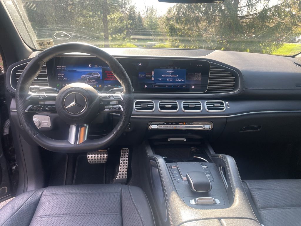 13 Speakers, 3.27 Axle Ratio, 3rd row seats: split-bench, 4-Wheel Disc Brakes, 7-Seat Configuration, ABS brakes, Adaptive suspension, Air Conditioning, Alloy wheels, AM/FM radio: SiriusXM, Apple CarPlay®/Android Auto®, Auto High-beam Headlights, Auto tilt-away steering wheel, Auto-dimming door mirrors, Auto-dimming Rear-View mirror, Auto-leveling suspension, Automatic temperature control, Brake assist, Bumpers: body-color, Child-Seat-Sensing Airbag, Compass, Delay-off headlights, Driver door bin, Driver vanity mirror, Dual front impact airbags, Dual front side impact airbags, Electronic Stability Control, Emergency communication system: eCall Emergency System, Exterior Parking Camera Rear, Four wheel independent suspension, Front anti-roll bar, Front Bucket Seats, Front Center Armrest w/Storage, Front dual zone A/C, Front reading lights, Fully automatic headlights, Garage door transmitter: HomeLink, Head restraints memory, Heated and Ventilated Power Front Seats w/Memory, Heated door mirrors, Heated front seats, Illuminated entry, Knee airbag, Leather steering wheel, Low tire pressure warning, MB-Tex Upholstery, Memory seat, Navigation system: MB Navigation, Occupant sensing airbag, Outside temperature display, Overhead airbag, Overhead console, Panic alarm, Passenger door bin, Passenger vanity mirror, Power adjustable front head restraints, Power door mirrors, Power driver seat, Power Liftgate, Power moonroof: Panorama, Power passenger seat, Power steering, Power windows, Premium audio system: MBUX, Radio: MBUX Multimedia System, Rain sensing wipers, Rear air conditioning, Rear anti-roll bar, Rear dual zone A/C, Rear fog lights, Rear reading lights, Rear seat center armrest, Rear window defroster, Rear window wiper, Remote keyless entry, Roof rack: rails only, Security system, Speed control, Speed-sensing steering, Speed-Sensitive Wipers, Split folding rear seat, Spoiler, Steering wheel memory, Steering wheel mounted audio controls, Tachometer, Telescoping steering wheel, Tilt steering wheel, Traction control, Trip computer, Turn signal indicator mirrors, Variably intermittent wipers, Ventilated front seats, Weather band radio, Wheels: 21" Triple 5-Spoke.